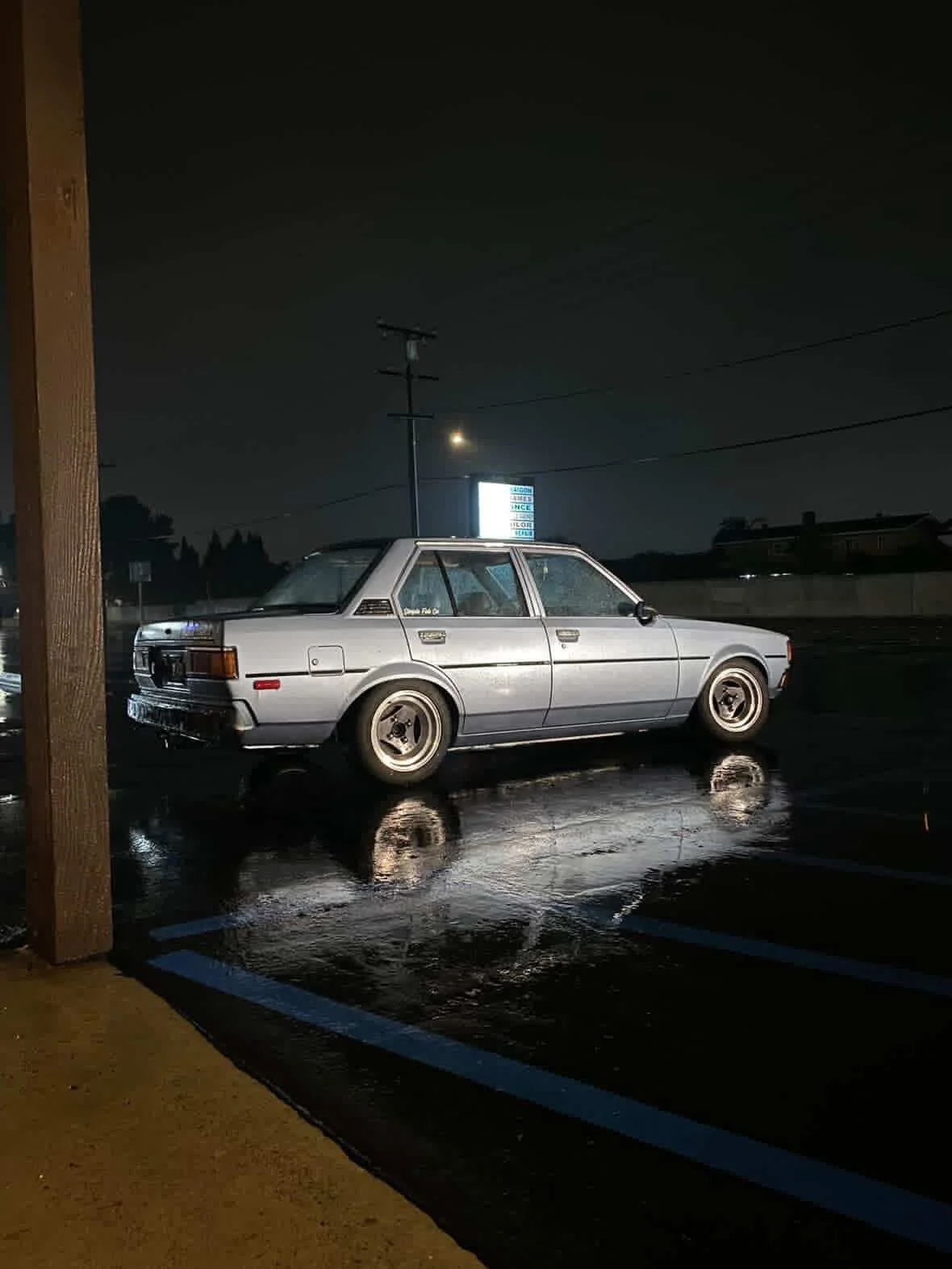 A 1981 Toyota Corolla 4-door, simple on paper, but built into something much closer to him.